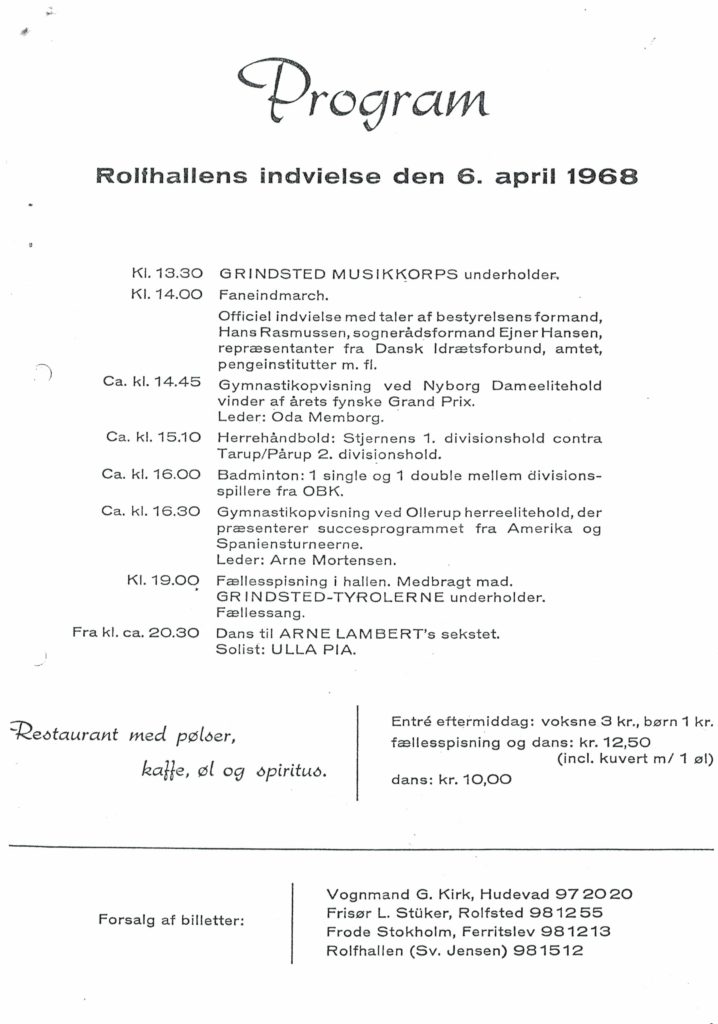 Den 9. februar 1966: ”Foreningen til Rolfhallens Opførelse” stiftes.